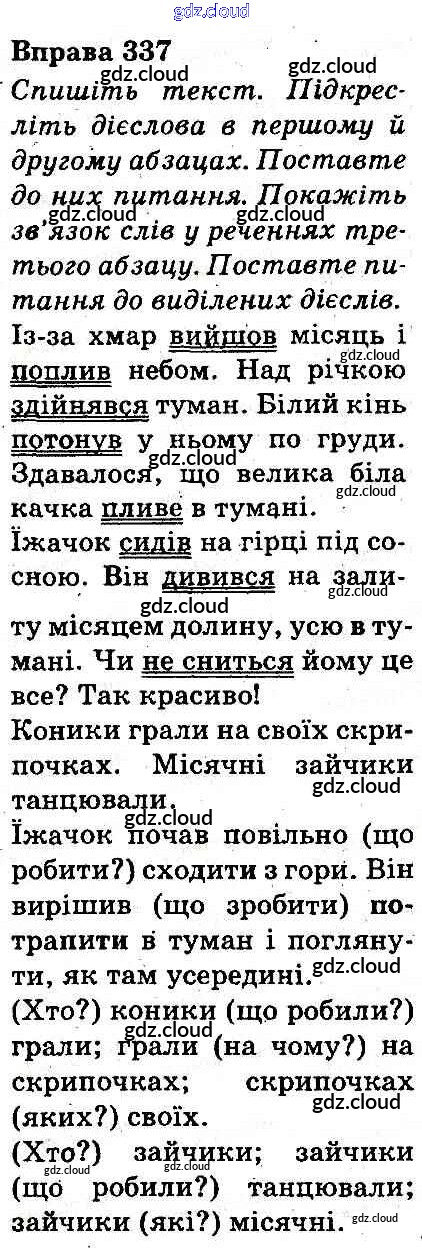 Ответ на задание 337 Учебник Украинский язык за 3 (третий) класс Захарийчук, Мовчун 2013 онлайн и без номера телефона.