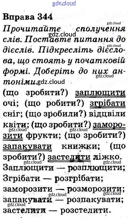 Ответ на задание 344 Учебник Украинский язык за 3 (третий) класс Захарийчук, Мовчун 2013 онлайн и без номера телефона.