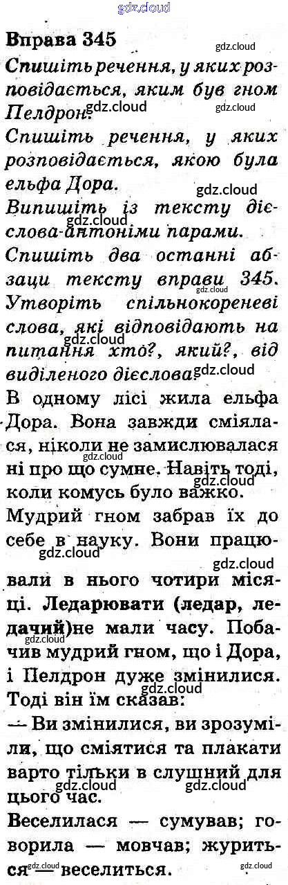 Ответ на задание 345 Учебник Украинский язык за 3 (третий) класс Захарийчук, Мовчун 2013 онлайн и без номера телефона.