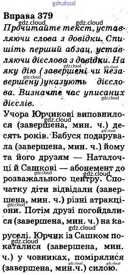 Ответ на задание 379 Учебник Украинский язык за 3 (третий) класс Захарийчук, Мовчун 2013 онлайн и без номера телефона.