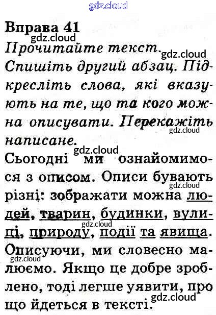 Ответ на задание 41 Учебник Украинский язык за 3 (третий) класс Захарийчук, Мовчун 2013 онлайн и без номера телефона.