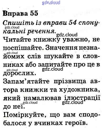 Ответ на задание 55 Учебник Украинский язык за 3 (третий) класс Захарийчук, Мовчун 2013 онлайн и без номера телефона.