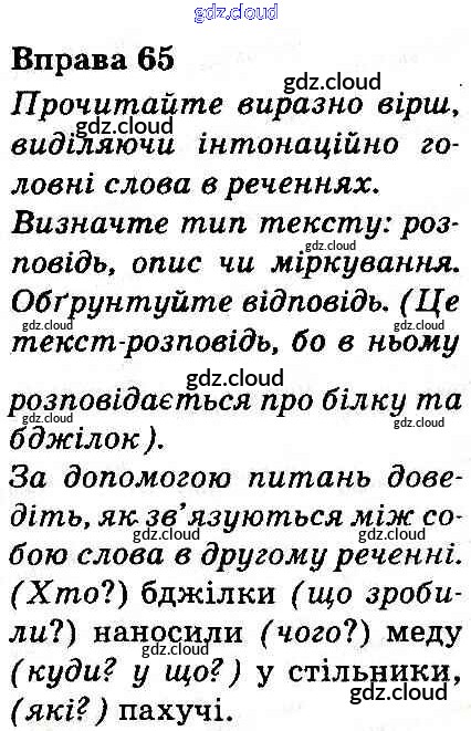 Ответ на задание 65 Учебник Украинский язык за 3 (третий) класс Захарийчук, Мовчун 2013 онлайн и без номера телефона.