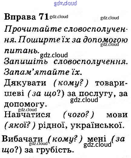 Ответ на задание 71 Учебник Украинский язык за 3 (третий) класс Захарийчук, Мовчун 2013 онлайн и без номера телефона.