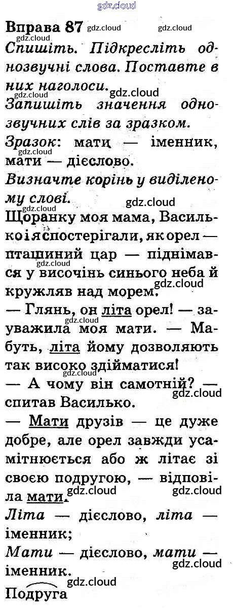 Ответ на задание 87 Учебник Украинский язык за 3 (третий) класс Захарийчук, Мовчун 2013 онлайн и без номера телефона.