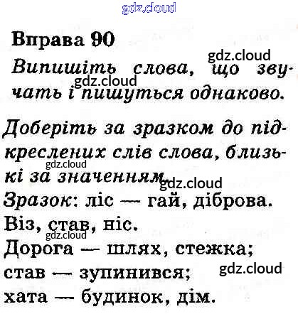 Ответ на задание 90 Учебник Украинский язык за 3 (третий) класс Захарийчук, Мовчун 2013 онлайн и без номера телефона.