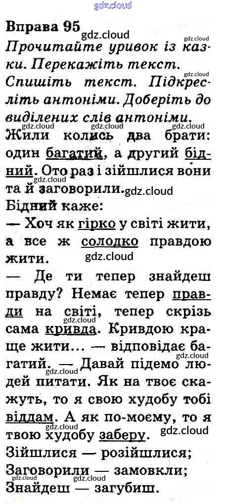 Ответ на задание 95 Учебник Украинский язык за 3 (третий) класс Захарийчук, Мовчун 2013 онлайн и без номера телефона.